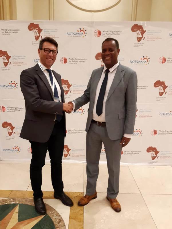 A delegation from the IZS of Teramo, led by the Director general, Dr Nicola D’Alterio, attended the 25th Conference of the WOAH Regional Commission for Africa, held in Gaborone from 20 to 24 February 2023, at the Grand Palm conference hall. As WOAH Expert and member of ERFAN Secretariat, Dr Massimo Scacchia was invited to speak about ERFAN as part of the continuity and support for WOAH-funded twinning projects.